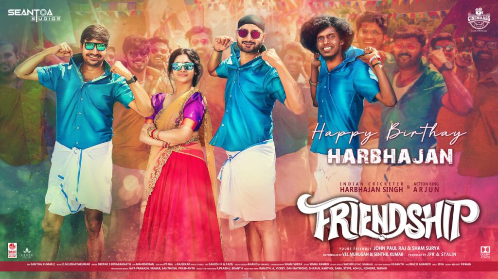 బౌలర్ గా క్రికెట్ ఆటలో ఎన్నో రికార్డులను సృష్టించిన ఆటగాడు హర్భజన్ సింగ్. బ్యాట్ తో కూడా సిక్సులతో సమాధానం చెప్పే బజ్జీ పుట్టిన రోజు నేడు. అయన నటుడిగా తెరంగేట్రం చేస్తున్న “ఫ్రెండ్ షిప్” చిత్ర బృందం ఆయనకు పుట్టిన రోజు శుభాకాంక్షలు తెలిపింది.. ఈ సందర్భంగా ఈ సినిమా లో ‘అరిచి అరగదీయమ్మ’ అనే సాంగ్ ని విడుదల చేసింది. ఈ సినిమా లో యాక్షన్ కింగ్ అర్జున్ కూడా నటిస్తుండడం విశేషం. ‘జాన్ పాల్ రాజ్-శ్యామ్ సూర్య’ సంయుక్తంగా దర్శకత్వం వహిస్తున్న ఈ సినిమా ఆర్.కె ఎంటర్ టైన్మెంట్స్ సమర్పణలో శ్రీ లక్ష్మీ జ్యోతి క్రియేషన్స్ పతాకంపై ఏ.ఎన్. బాలాజీ నిర్మిస్తున్నాడు. ప్రముఖ తమిళ నిర్మాత జె.సతీష్ కుమార్ (జెఎ స్ కె) విలన్ గా, తమిళ బిగ్ బాస్ విన్నర్, మాజీ ‘మిస్ శ్రీలంక’ ‘లోస్లియా’ హీరోయిన్ గా నటిస్తున్నారు. 25 కోట్ల భారీ బడ్జెట్ తో తెరకెక్కుతున్న ఈ చిత్రం యొక్క టైటిల్ లోగోను మంత్రాలయం పీఠాధిపతి శ్రీ సుభుదేంద్ర తీర్ధ స్వామి మంత్రాలయంలో ఆవిష్కరించగా భారీ స్పందన దక్కింది. త్వరలోనే రామోజీ ఫిలిం సిటీ లో పాట, ఫైట్ ను షూటింగ్ జరుపుకోనున్న ఈ సినిమా త్వరలోనే విడుదల కానుంది.